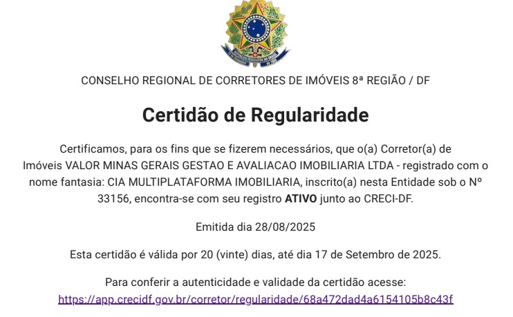 O empreendimento encontra-se devidamente registrado pelo 2º Ofício de Registro de Imóveis do Distrito Federal, nas matrículas 162.526, 178.055, 178.056, 178.057, 178.058 e 178.059, sob a responsabilidade da Tororó Eco Ville Residence Empreendimentos LTDA - CNPJ 09.286.719/0001-05 - Endereço - DF 140 - KM 06 - NÚMERO 6700 - Setor Habitacional Tororó - Jardim Botânico - CEP 72.595-450 - Brasília/DF. As imagens são meramente ilustrativas, prevalecendo o que consta expressamente no memorial descritivo a ser firmado pelo adquirente. A vegetação apresentada é meramente ilustrativa e representa porte adulto das espécies. Na entrega, a vegetação poderá apresentar diferença de porte, mas estará de acordo com o projeto de paisagismo.